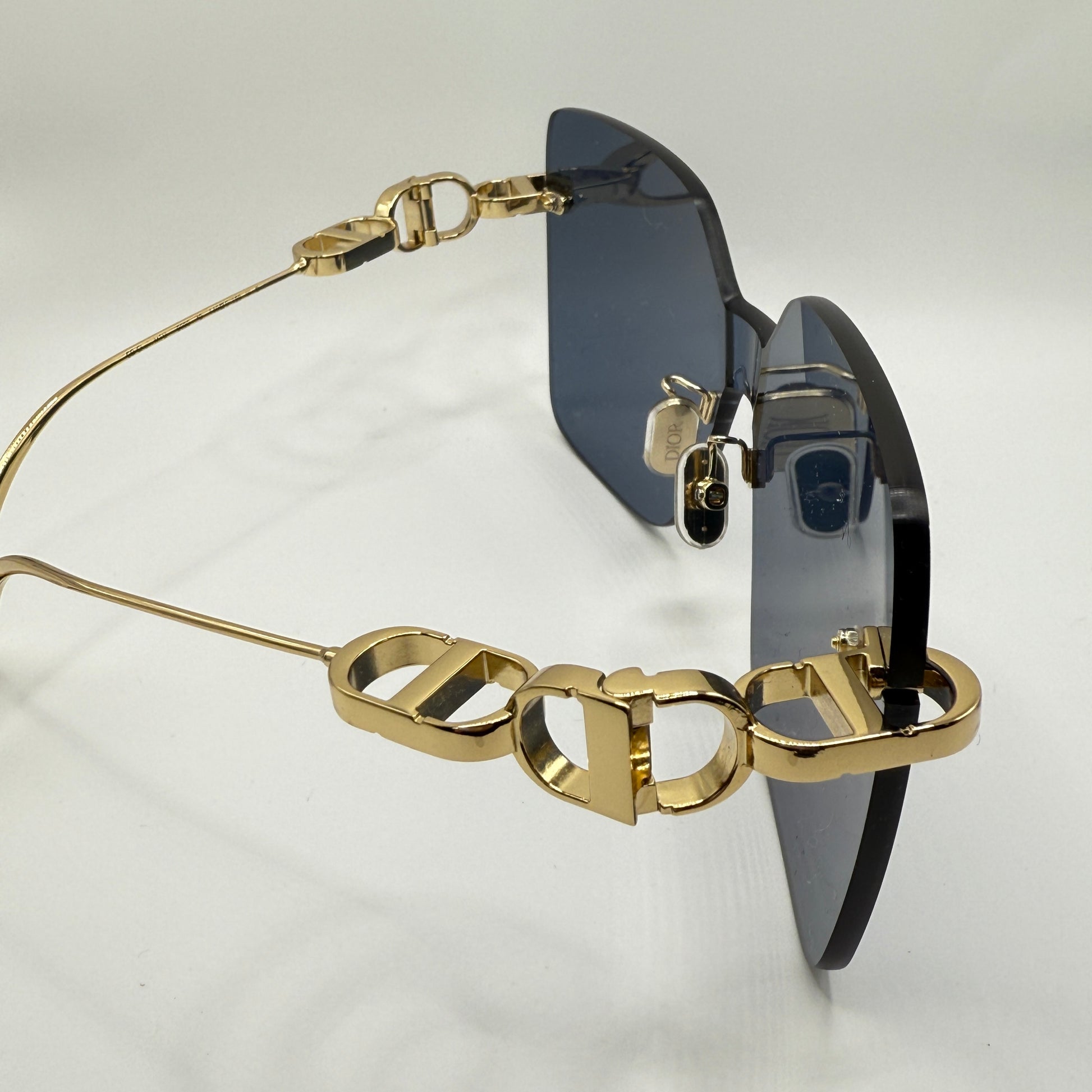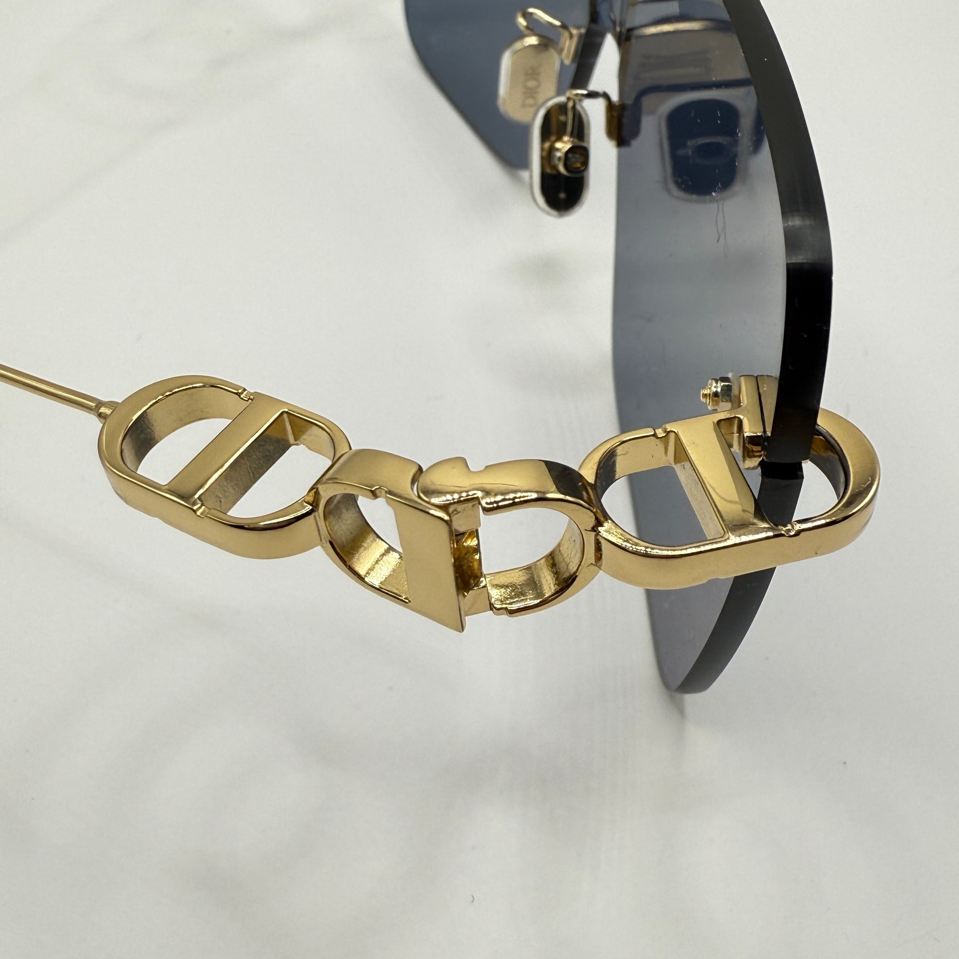 Il modello CD Chain M1U unisce il fascino del design futuristico alla raffinatezza gioiello tipica della Maison Dior. La montatura glasant con lenti libere offre un effetto di estrema leggerezza e trasparenza, mentre la forma mascherina avvolge delicatamente il volto con un’eleganza decisa. Le lenti blu uniformi donano un look moderno e sofisticato, assicurando protezione UV completa. Le aste in metallo dorato sono impreziosite da tre elementi “CD” intrecciati, che richiamano la celebre collezione Dior Jewel J’adior, conferendo al modello un aspetto prezioso e iconico. Un occhiale couture dal design audace, ideale per chi desidera distinguersi con un tocco di lusso e personalità.