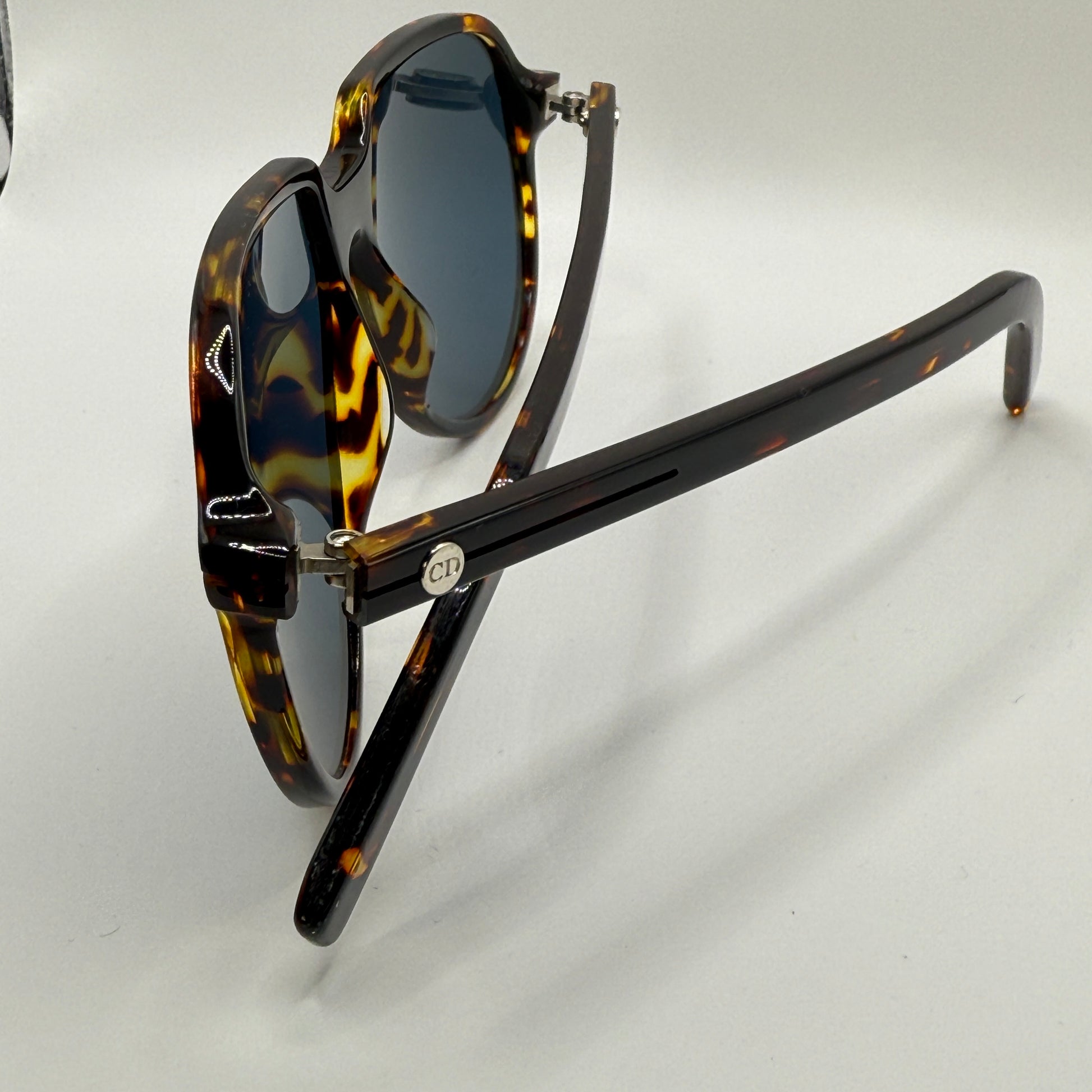 Le lenti blu uniformi donano profondità allo sguardo e una protezione solare ottimale, mentre il logo CD inciso su un tondino silver all’estremità delle aste è un dettaglio distintivo, discreto ma inconfondibilmente Dior.