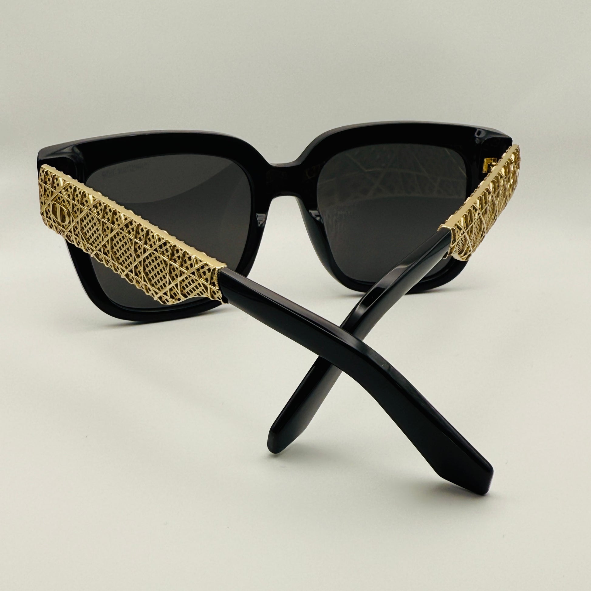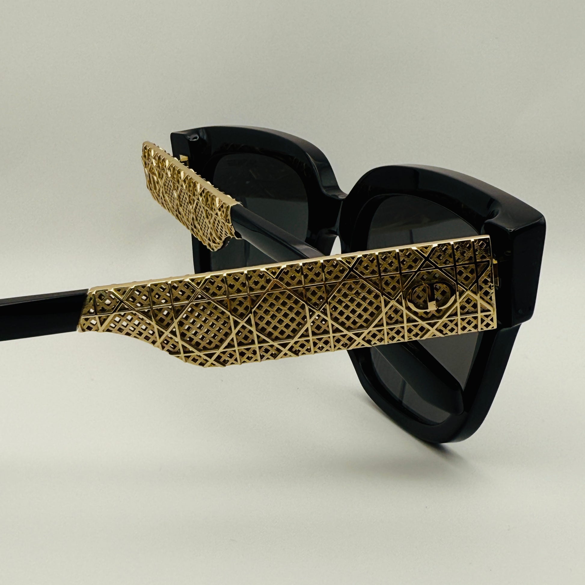 Il logo “CD” applicato sulle aste completa l’occhiale con un tocco prezioso e riconoscibile, mentre le lenti grigio fumo assicurano una protezione UV totale e uno stile elegante e intramontabile.