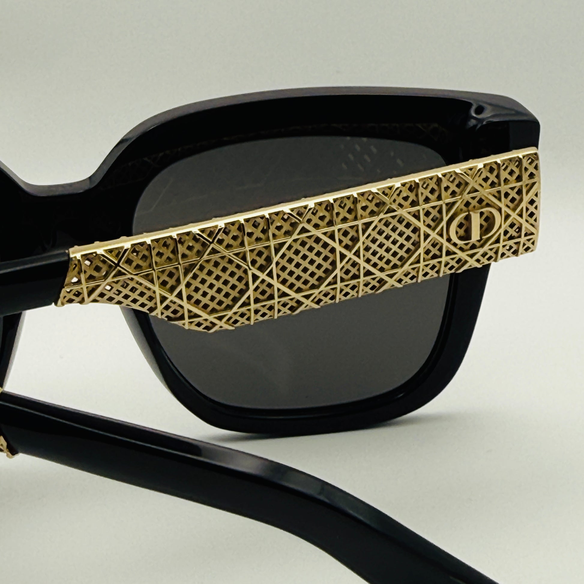 Il modello Dior Esille S1I conquista con la sua montatura in acetato nero lucido, dal design deciso e femminile, arricchita da dettagli che la rendono un vero gioiello da indossare.