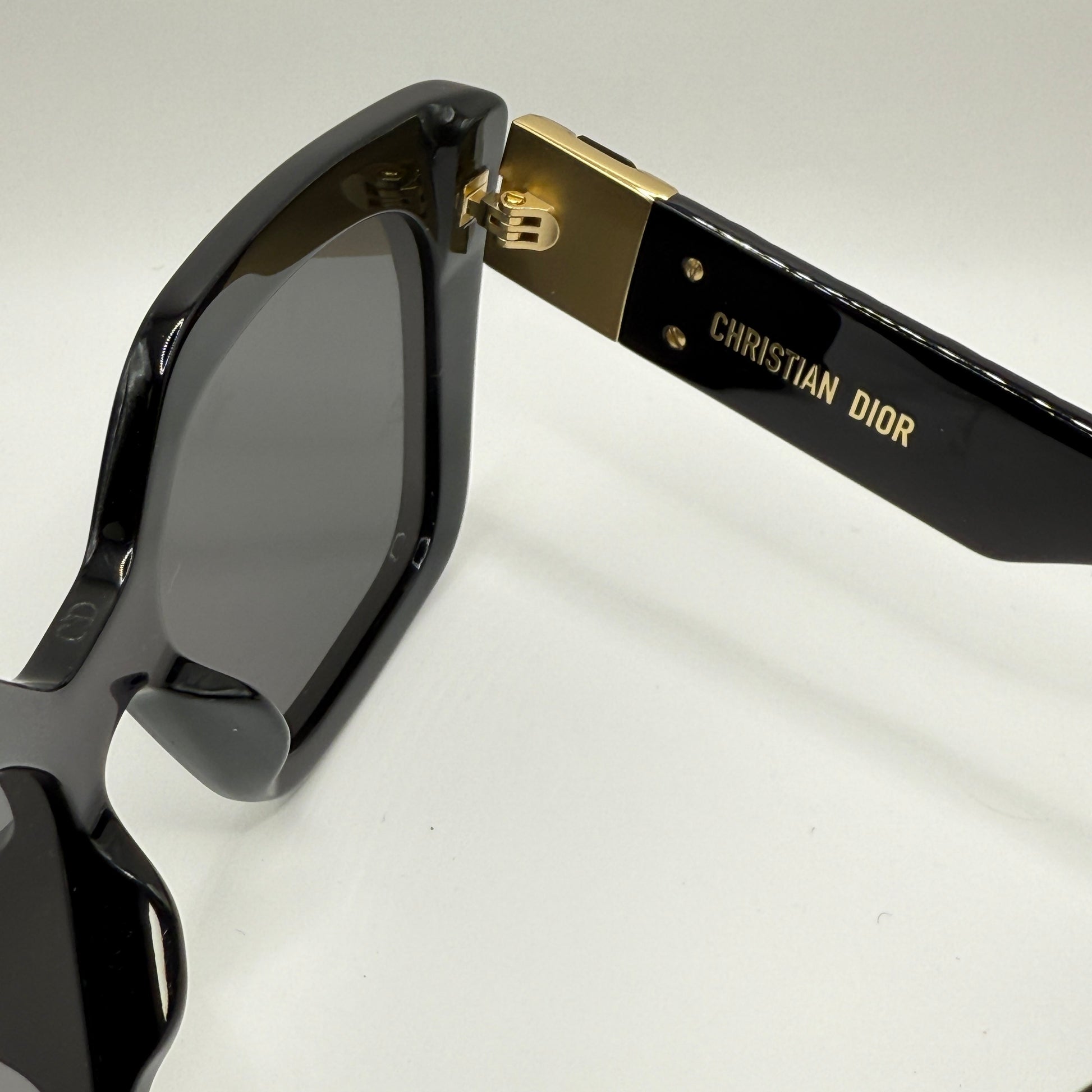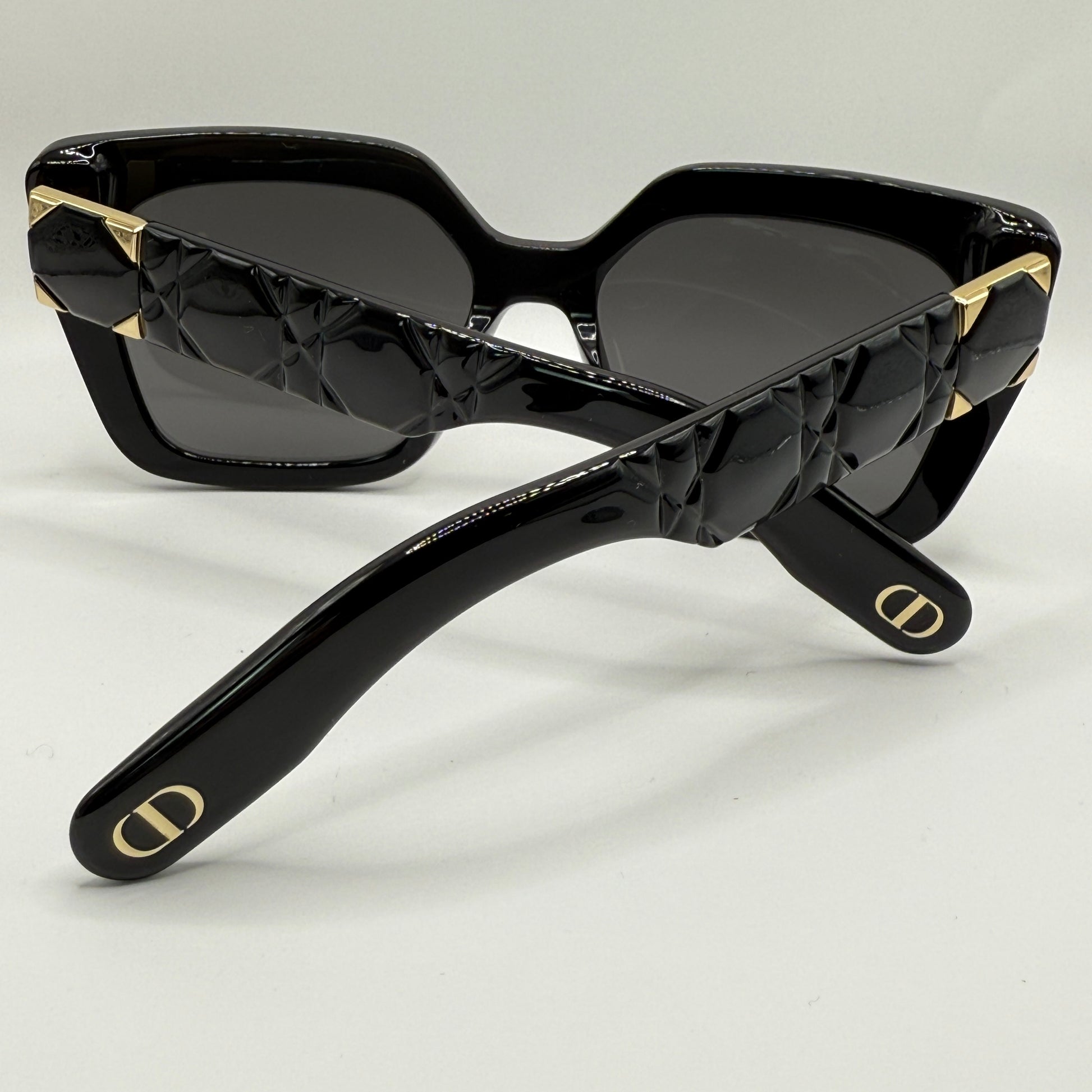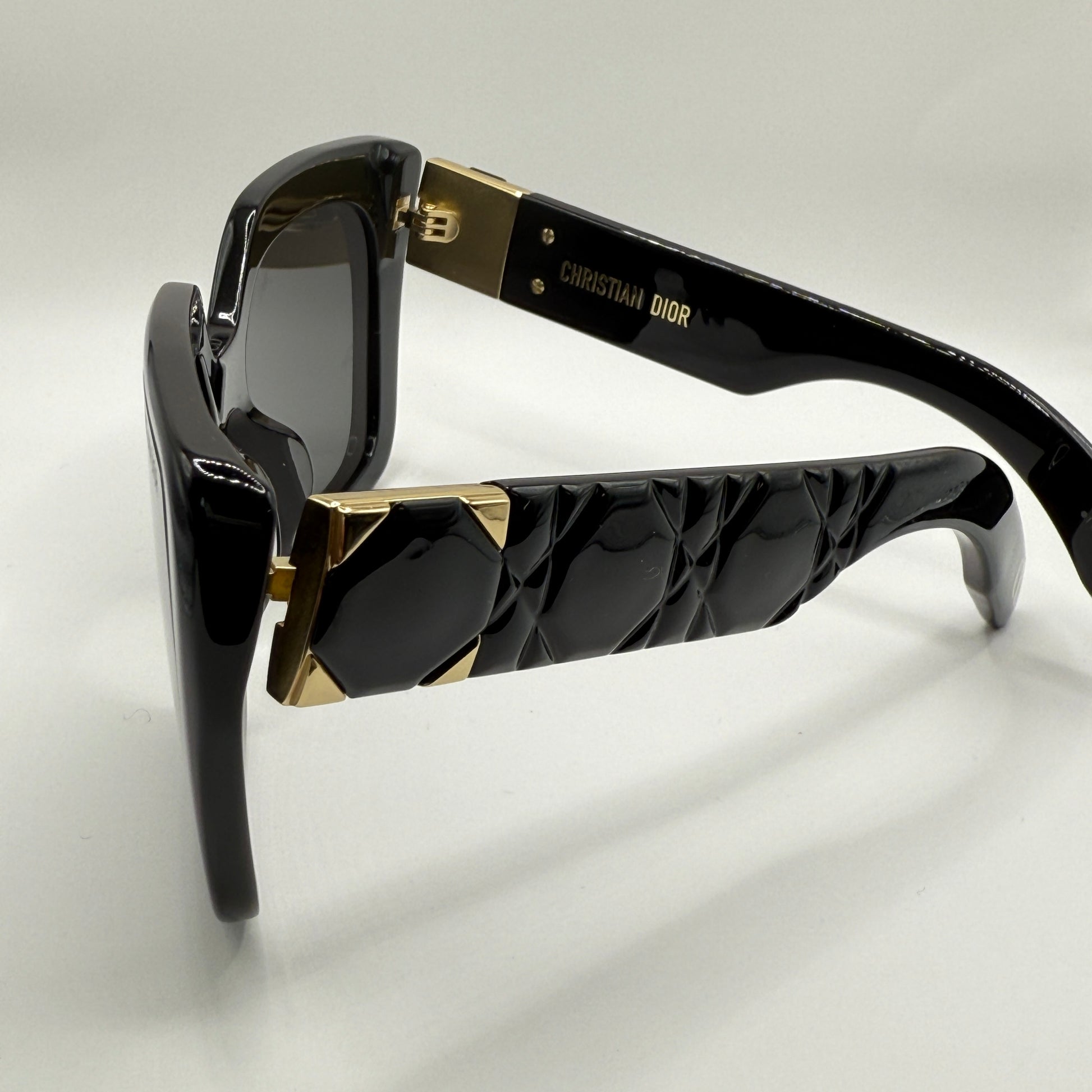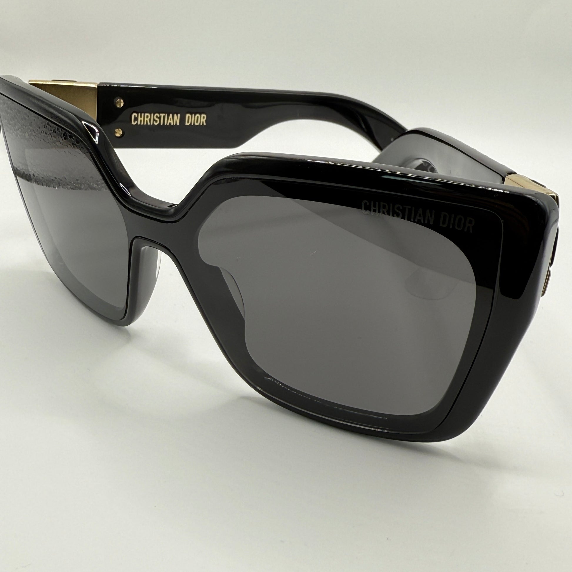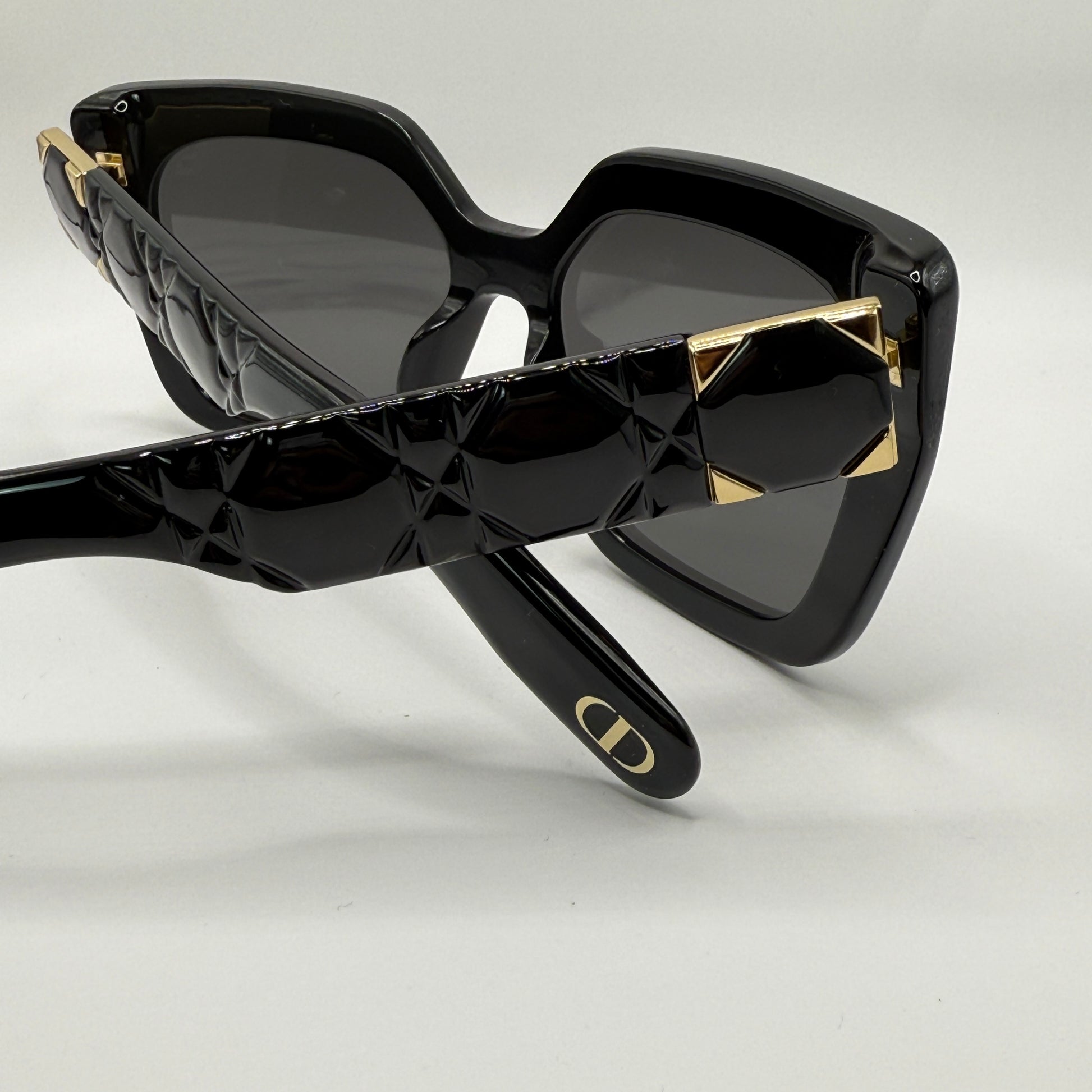 Il modello Dior Lady 95.22 è un omaggio moderno alla leggendaria borsa Lady Dior, nata nel 1995 e reinterpretata nel 2022 con linee più contemporanee. In questa variante, l’occhiale si distingue per il frontale a mascherina: una struttura compatta in acetato nero lucido, dove lente e montatura si fondono in un’unica superficie continua che ricopre anche il ponte. Le aste scolpite con la trama “Cannage” Lady Dior riprendono la lavorazione iconica della Maison, arricchite da inserti dorati laterali che aggiungono un tocco prezioso e luminoso. Le lenti grigio fumo offrono protezione UV totale e un comfort visivo ottimale. Un modello che fonde artigianalità e audacia, dedicato a chi desidera un accessorio couture dal fascino deciso e sofisticato.