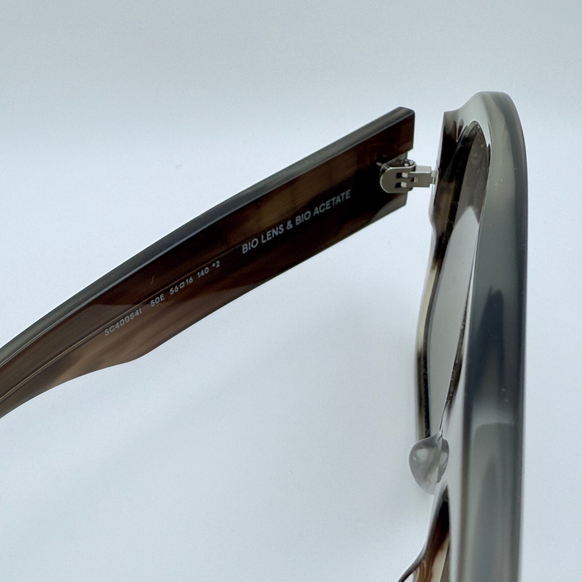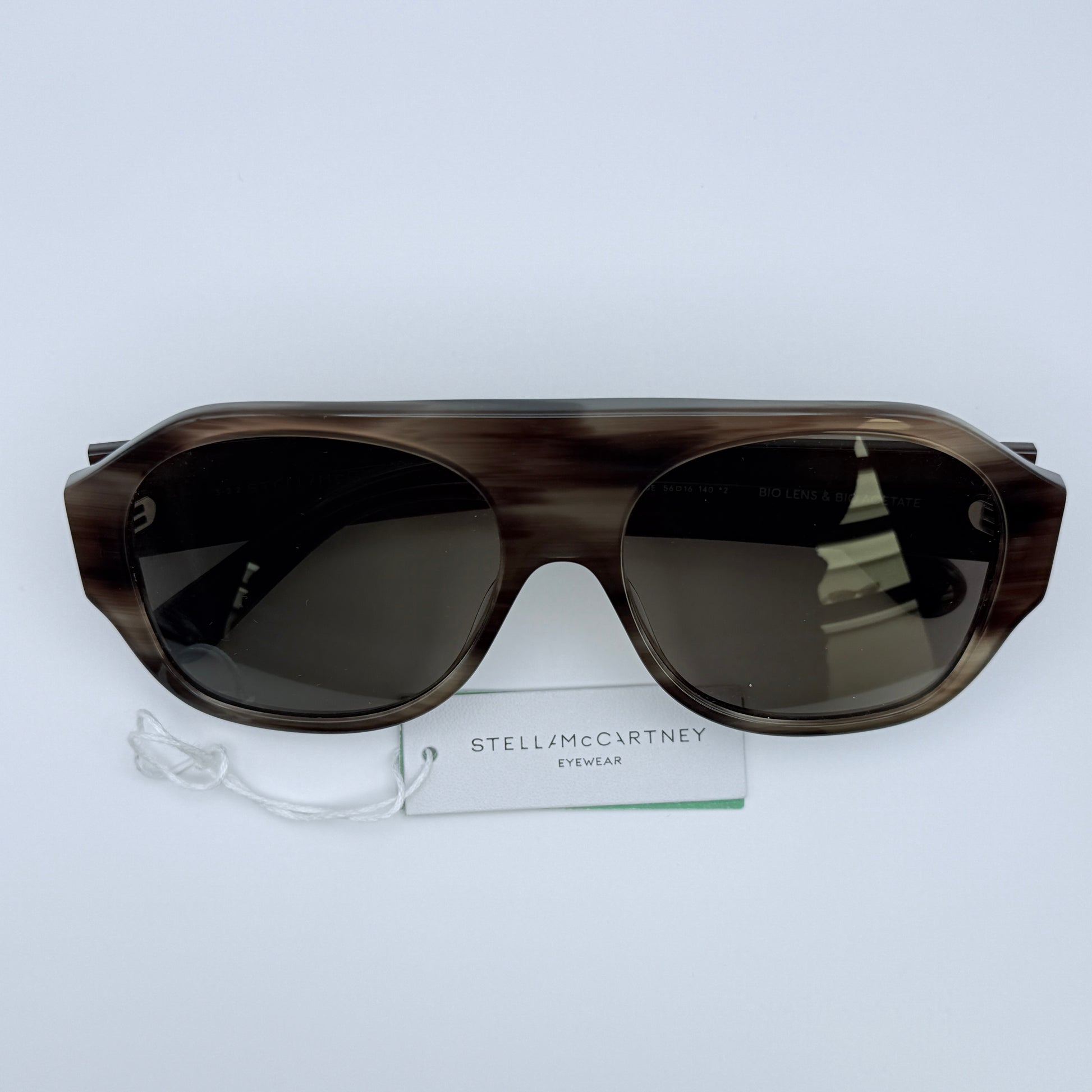 Occhiale da sole Stella McCartney 40054I, design leggermente a goccia che combina eleganza e carattere. La montatura è realizzata in bio-acetato dalla finitura “simil corno” in tonalità marrone sfumata, che dona profondità e texture naturale. Le lenti sono verde-marrone, offrendo una resa cromatica calda ma raffinata. Le aste sono impreziosite da micro-borchie che formano la scritta del brand, conferendo un tocco distintivo e fashion. Un occhiale che coniuga stile, originalità e funzionalità, ideale per chi cerca un pezzo dal design curato.